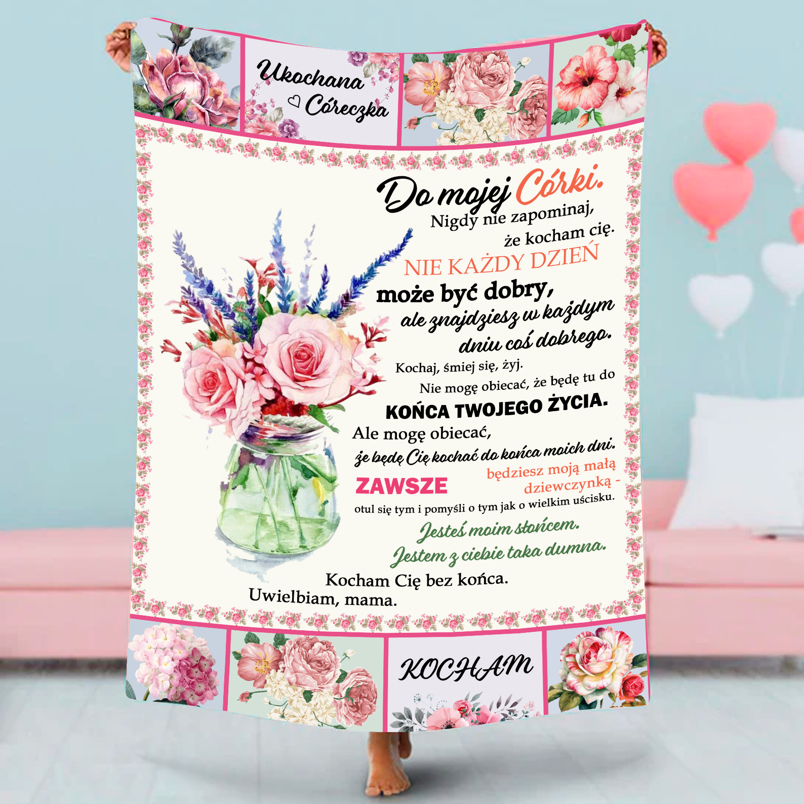 Zapoznaj się z naszą kolekcją personalizowanych prezentów dla Twojej ukochanej córki. Wybierz coś, co będzie doskonałym wyrazem Twojej miłości, dumy i wsparcia dla niej. Nasze wyjątkowe prezenty są stworzone, aby umocnić więź między Wami i przypomnieć, jak ważna jest dla Ciebie Twoja córka. Niech Twój prezent będzie wyjątkowym znakiem miłości i troski, który będzie towarzyszył jej przez wiele lat. Prezent dla mamy, siostry i przyjaciółki na urodziny, dzień matki, święta, rocznicę, imieniny, awans, Boże Narodzenie.