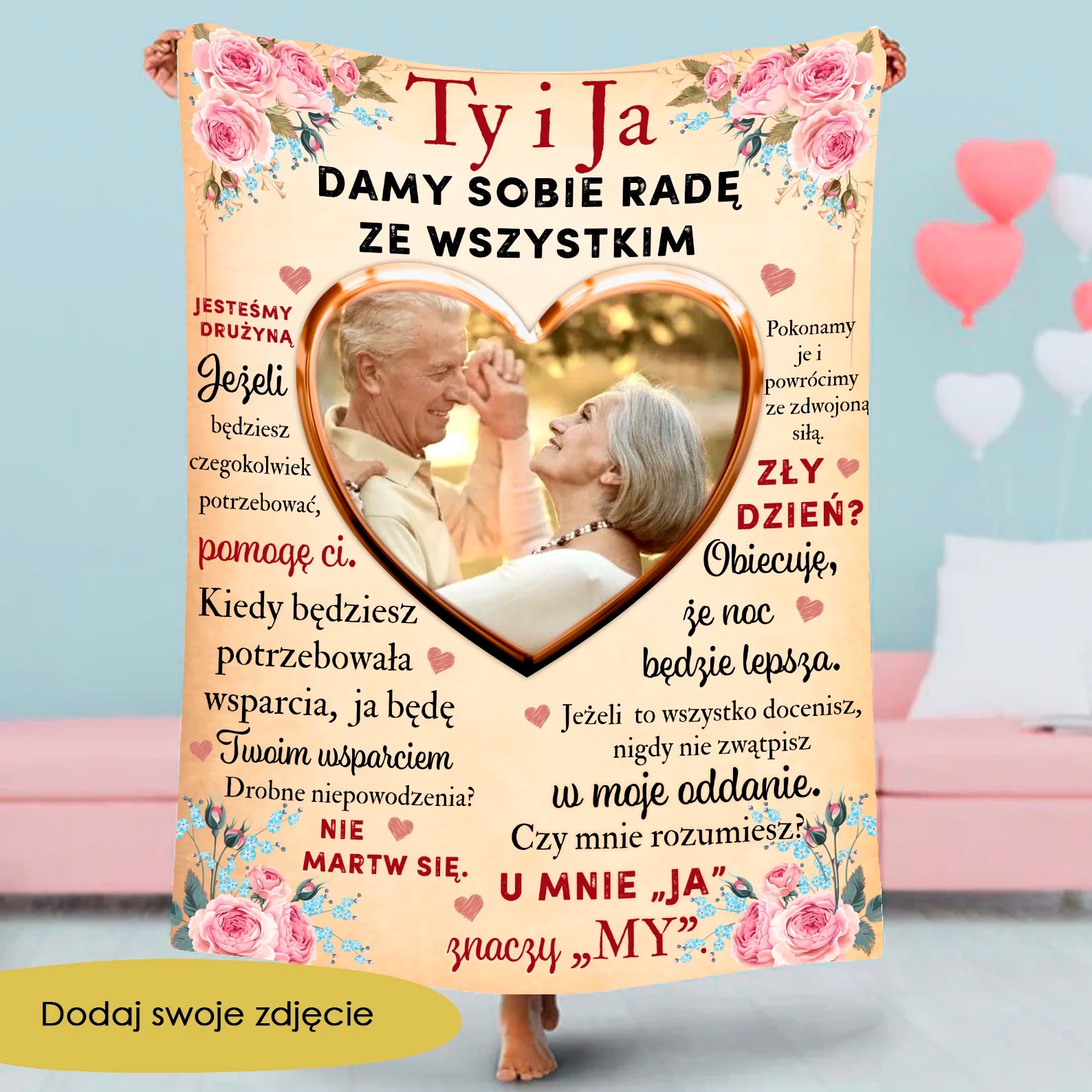 Spersonalizowany Koc ze zdjęciem dla pary - Prezent na Walentynki