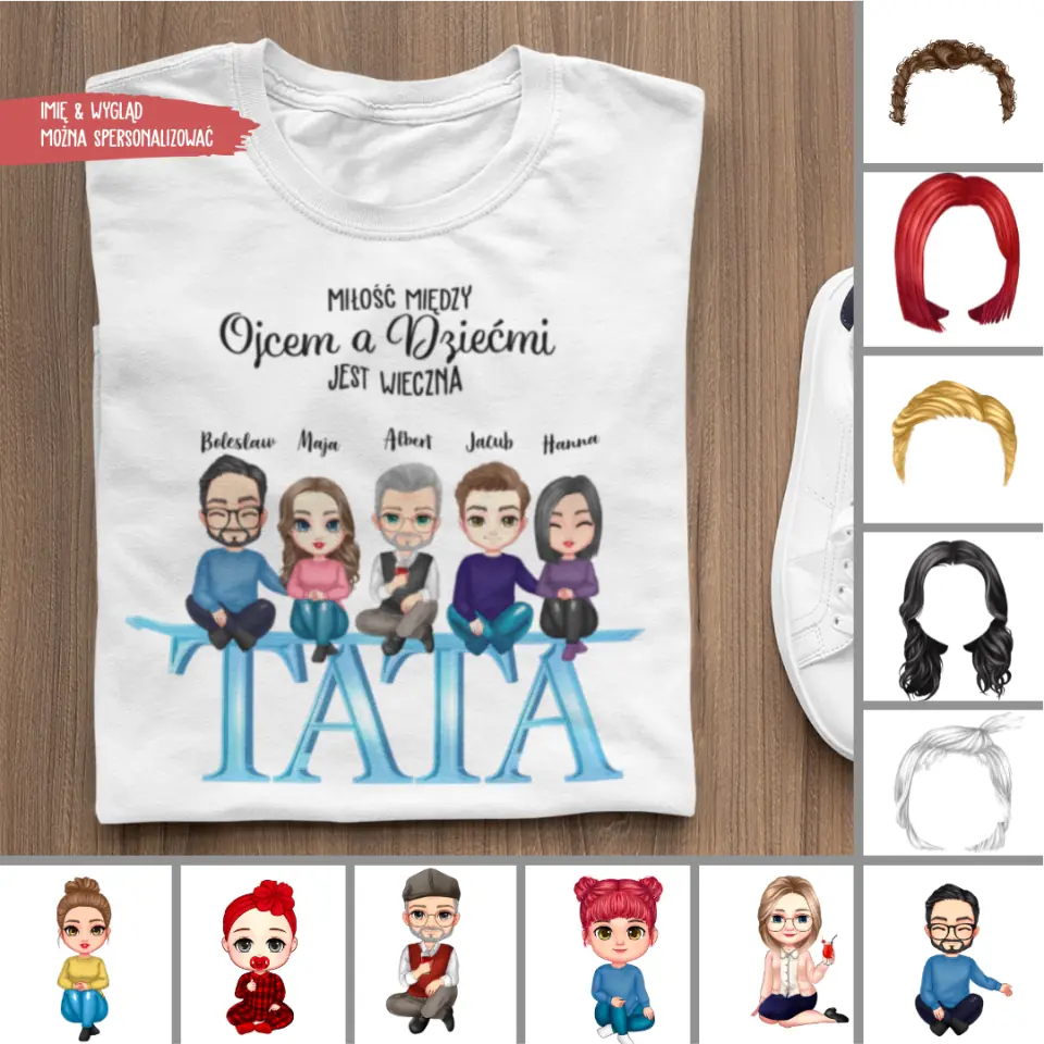 Znajdź idealny prezent na Dzień Ojca w naszej wyjątkowej kolekcji personalizowanych upominków! Wybierz coś wyjątkowego, co sprawi, że ten wyjątkowy dzień będzie jeszcze bardziej niezapomniany dla Twojego ukochanego taty. Nasze unikalne prezenty są stworzone, aby celebrować miłość i wdzięczność wobec najważniejszej osoby w Twoim życiu. Niech Twój prezent będzie wyjątkowym wyrazem Twojej miłości i troski w tym wyjątkowym dniu! Prezent dla ojca, syna, przyjaciela, kumpla. na Dzien Ojca. Spersonalizowany presenty ok córki, syna, dzieci, koleżanki, matki, przyjaciół. Wybierz postacie, fryzury, kolor włosów i ubrania i stwórz swój własny, niepowtarzalny projekt prezentu.